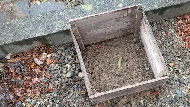 元々、コンポストはmy作付けエリアの西側に置いていたのですが、植物への日当たりを考えて、レイズドベッドのすぐ東側へ移動しておりました。