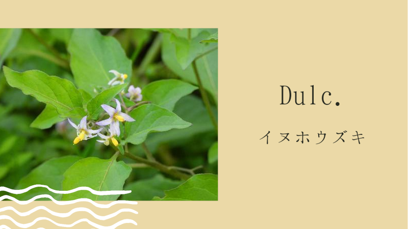 最初のページの「Dulc. ダルカマーラ」はイヌホウズキという植物で、全草にソラニンという毒を含み、摂取すると、めまい・麻痺・頭痛など様々な症状を引き起こします。